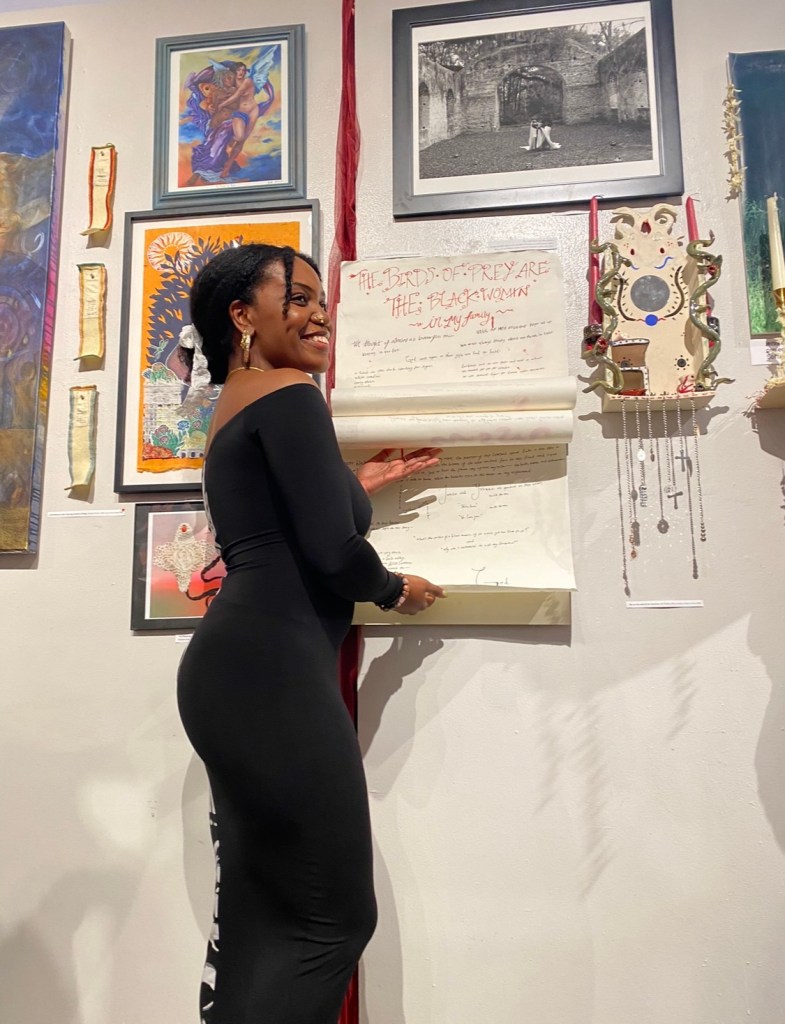 In Reverence of the Feminine Group Show, “Coat of Arms,” three calligraphy scroll poems on parchment paper (March 2024)
